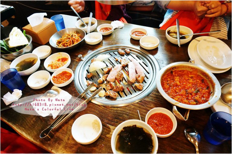 【旅遊✈KOREA】2015櫻在首爾*弘大站‧小豬儲蓄罐烤肉돼지저금통。用石頭烤肉風味口感就是不一樣~滿出來的豬肉和小菜♥有著100%滿足感